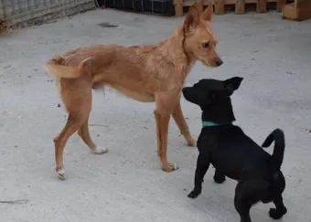 Im Auslauf blühen Kylian und Koly richtig auf: Sie rennen ausgelassen umher, erkunden neugierig ihre Umgebung und zeigen sich sehr verspielt im Umgang mit anderen Hunden. Zwei lebensfrohe Hunde, die trotz ihres schweren Starts ins Leben ihr Vertrauen nicht verloren haben.
