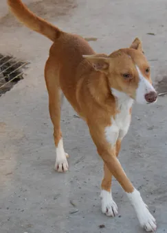 Trina wurde auf einem Olivenfeld gefunden, wo freundliche Arbeiter sie täglich fütterten, bis sie das Tierheim kontaktiert haben. Es war ihr letzter Arbeitstag in diesem Gebiet, und ohne menschliche Fürsorge hätte Trina dort allein und hungrig zurückbleiben müssen.
